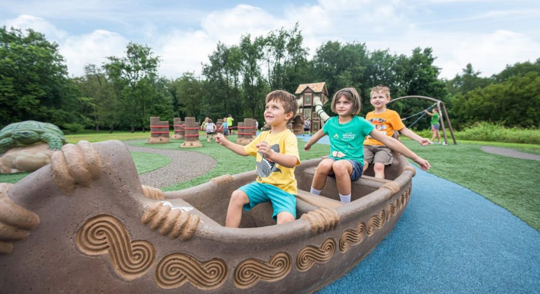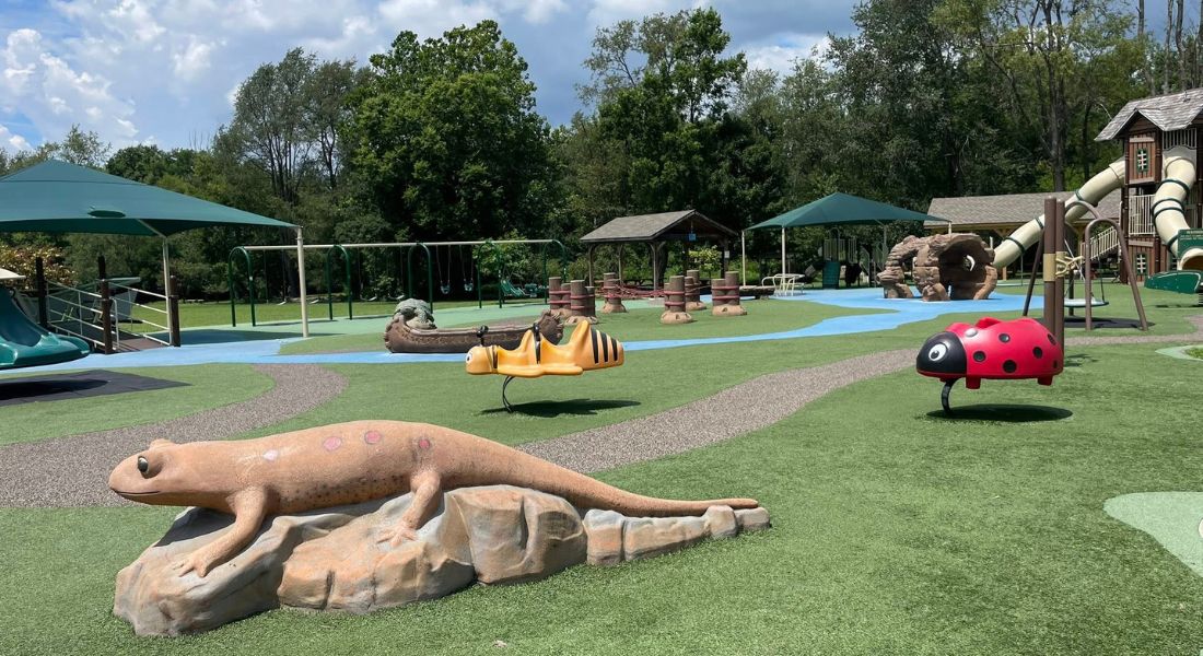 Our Forest Friends Playground is a 15,000 square foot ADA-accessible playground that is a child’s dream! There is a 12’ tower with three slides, a giant turtle and newt, canoe, wheelchair accessible play pieces, swings, and a toddler play area. Nearby are covered pavilions and picnic tables.